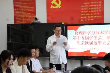 于格物楼314召开第十五届学生会换届大会。学院副书记章岚、全体辅导员、十四届主席团成员与竞选成员参与本次大会,主席团成员樊盛龙主持此次大会。