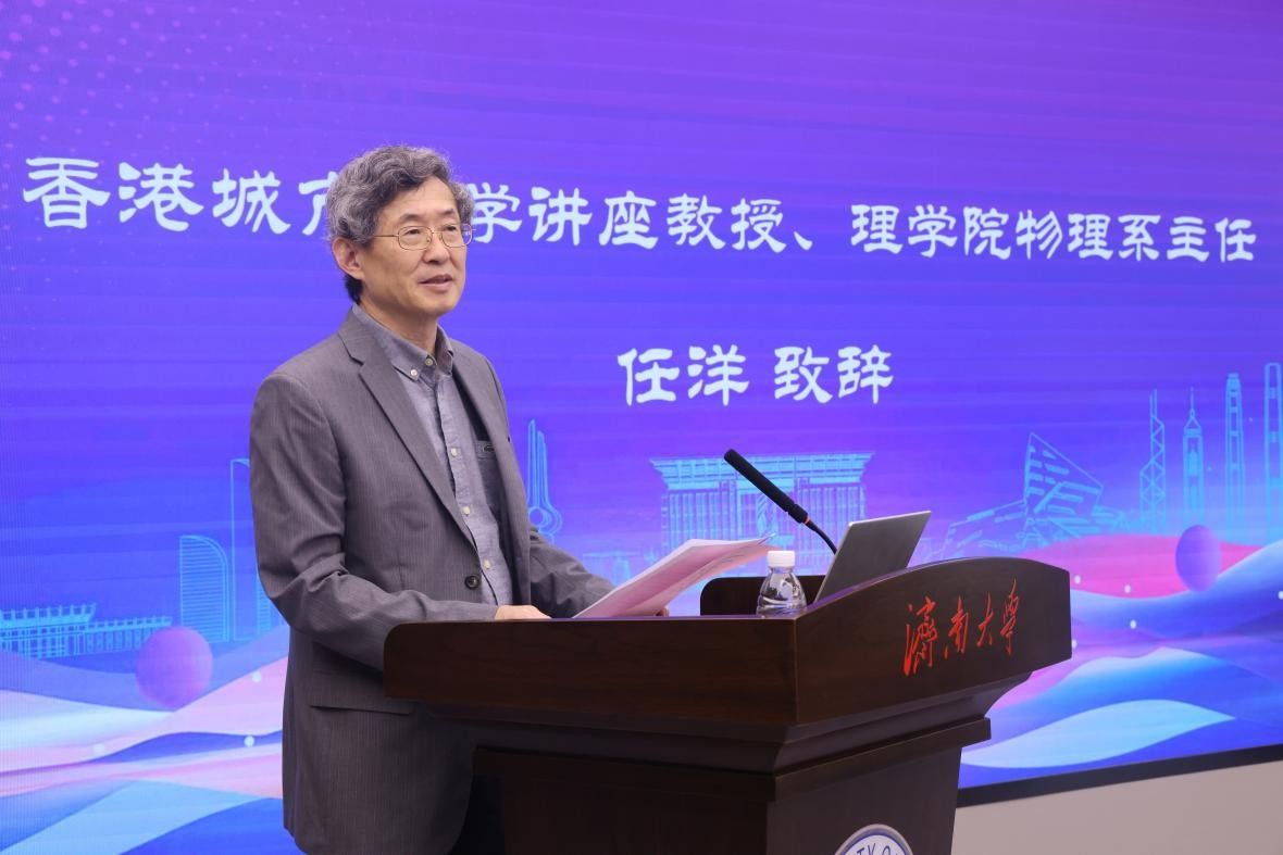 香港城市大学讲座教授、理学院物理系主任任洋代表学校致辞,他表示此次论坛是继今年春季两校成功互访并签署合作协议后,迈出的实质性一步。为将合作蓝图转化为具体成果,任洋提出了一系列构想:构建科研平台,优化“联合实验室—设备共享—教师互访”的全流程合作模板;深化人才培养,将推动研究生短期访学、优先录取成人AI