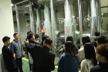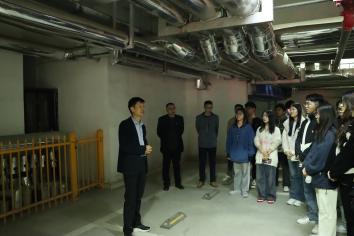 为增强学生理论联系实际的能力,不断增加职业认知和职业体验,座谈交流会后,学院师生前往方亚新能源公司运维管理的华夏帝苑小区地源热泵机房进行了参观学习,方亚新能源副总经理韩乃峰、新能源教工党支部教师赵强分别进行现场教学讲解。
