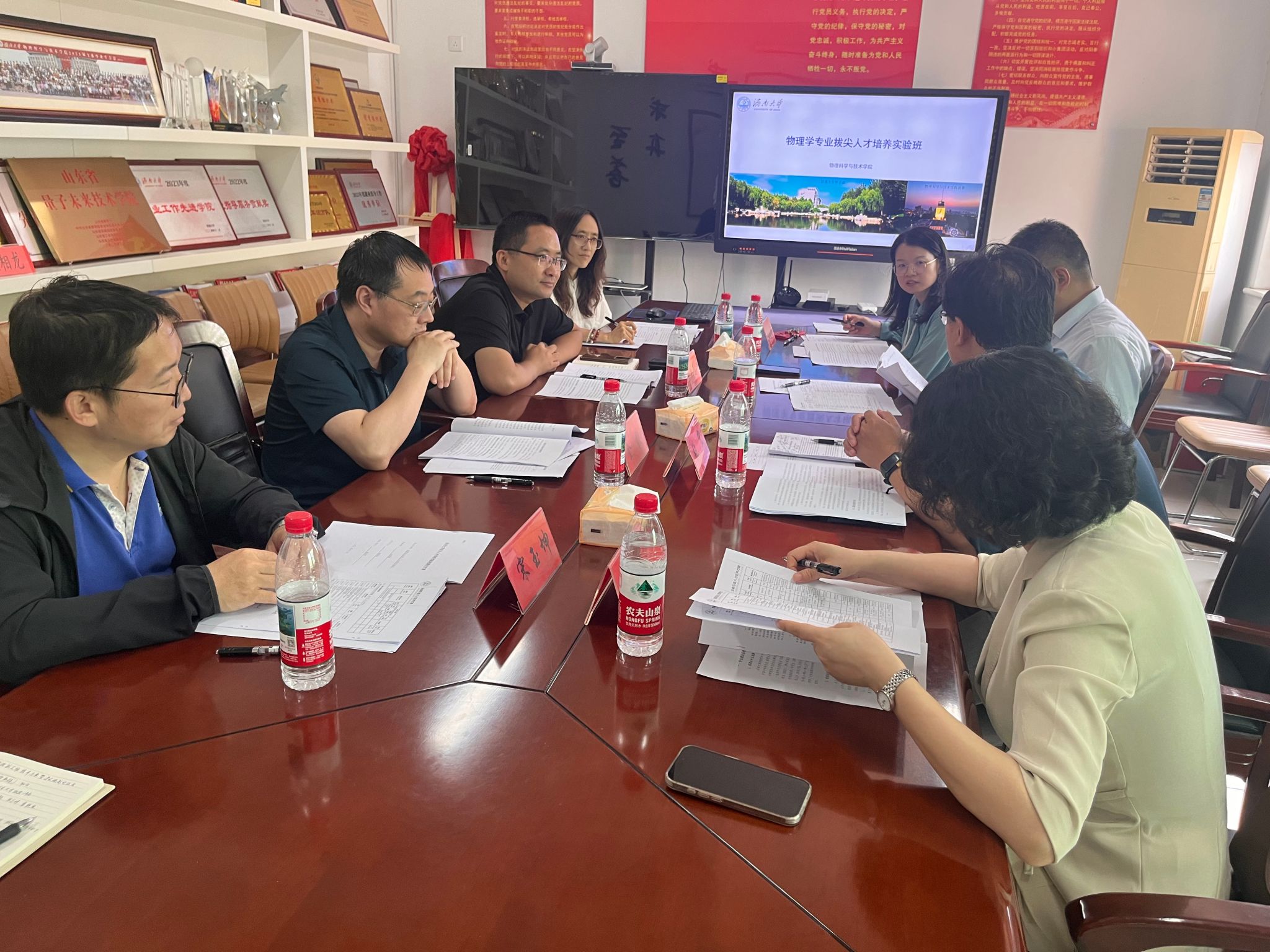物理学院金毅教授、童艳荣教授组成专家论证组,教务处处长助理胡丽华代表学校参会,对新成立物理拔尖班的培养方案及建设规划方案进行全面研讨与指导。会议由学院副院长李洪蕾主持,物理系教师代表参会。
