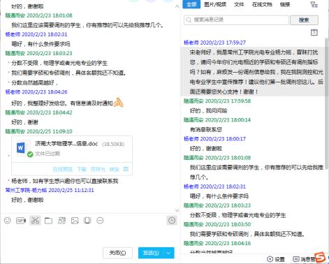 宋朋主任时刻关注学生考研、就业两个“出口”问题。通过“提前引导、过程指导、考后调制”全过程全方位的指导,2019年光电信息科学与工程专业考研率实现新的突破,达到43.8%,考研成绩在学校中名列前茅。2020年考研成绩已经公布,但是面临疫情,考研复试和调剂工作延后。在此期间,宋朋主任利用此段时间,积极了解联系各类调剂信息,做好考研学生信息、考研院校专业调剂选择建议和协调联系等工作,为后续研究生录取工作做准备。