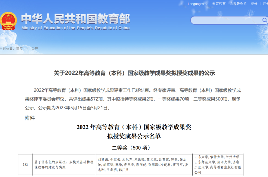 此外,根据教育部网站通知,张海鵾教授参与的一项教学成果被公示为2022年高等教育(本科)国家级教学成果二等奖,成人AI 为第五完成单位。