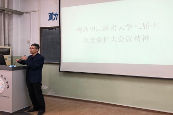 三届七次全委扩大会议主要任务和内容进行了传达,并就学校学校十四五发展规划,树立二〇三五远景目标等2021年重点内容,结合学院实际工作开展专题党课。党课中一是要求全体师生坚决贯彻习近平总书记关于教育的重要论述、党中央决策部署、坚决落实学校工作要求,牢固树立“四个意识”、坚定“四个自信”、做到“两个维护”;二是要求老师们深刻领会会议内涵和要义,把广大干部师生思想和行动统一到会议精神上来,将会议精神融入思政课程和课程思政之中,指导学生刻苦学习、锤炼素质,不断提高科学文化水平,坚定理想信念。最后,郑书记号召全院教职工要大力弘扬新时代“挑山工”精神,以习近平新时代中国特色社会主义思想为指导,真抓实干,开拓进取,以优异成绩庆祝建党100周年。