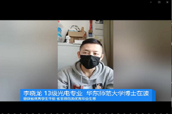 参与科技创新活动是理工科学习的一个重要途径,也是一个提升自己的宝贵机会,为向学院2018级、2019级光电系同学们普及科创相关知识,动员同学们投入到科技创新活动中,物理学院于412日上午以线上直播方式举办了“启航梦想,光耀青春”光电系创新创业论坛,邀请2016级同学及毕业校友分享经验,实现在校生与校友之间的互动交流,为同学们的科创道路解答疑惑。