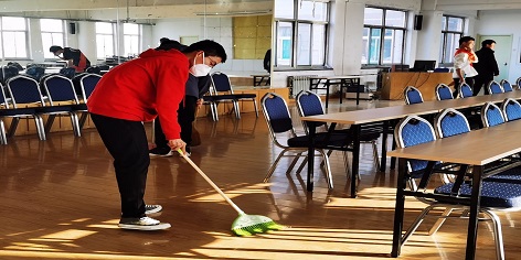 青年志愿者协会的同学在杜家宸同学的指引下准时来到了学生公寓六号做好清洁服务活动准备工作。在与公寓管理员沟通完成之后,清洁志愿活动正式开始。活动伊始,同学们在分到卫生工具之后立刻开始了对楼道垃圾的清洁,在对卫生死角进行清理的时候,公寓管理员提供了热情的帮助。在本次清洁活动中,志愿者同学们有说有笑,将繁杂的清洁任务变的轻松快乐,通过互相帮助,共同努力,原本又脏又乱的办公区重新变的整洁起来。活动结束后,老师对本次的清洁任务提出了表扬,志愿者同学们看着焕然一新的教室都露出了灿烂的微笑,本次志愿活动至此圆满结束。