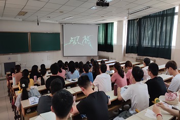 物理学院物理系教工党支部与物理学生党支部弘扬党的精神,传播党的意志为初心,积极组织老师与同学们展开深入交流。活动分两部分进行,第一部分由物理系教工党支部书记杨中娟物理学生党支部书记伊梦寒为学生上党课。在悠扬又激昂的旋律下,杨老师以“讲好党的故事,铭记党的历史”为主题,向同学们讲述中国共产党的精神,传播着中国共产党的理念,教育引导学生牢固树立“四个意识”,“四个自信”,做到“两个维护”。伊老师以“接过奋斗的接力棒”为主题向同学们介绍了新民主主义革命阶段,社会主义革命和社会主义建设阶段,改革开放和社会主义现代化建设的新阶段中发生的众多大事,从中共一大到新中国的成立,从抗匪剿匪、抗美援朝到十一届三中全会后众多领导人为祖国富强,人民幸福所作出的种种努力。老师们的讲解充分展现了无数中国共产党人为了国家的兴盛所做出的努力,充分激发了大家承继伟业、团结奋斗、继续前行的爱国热情。